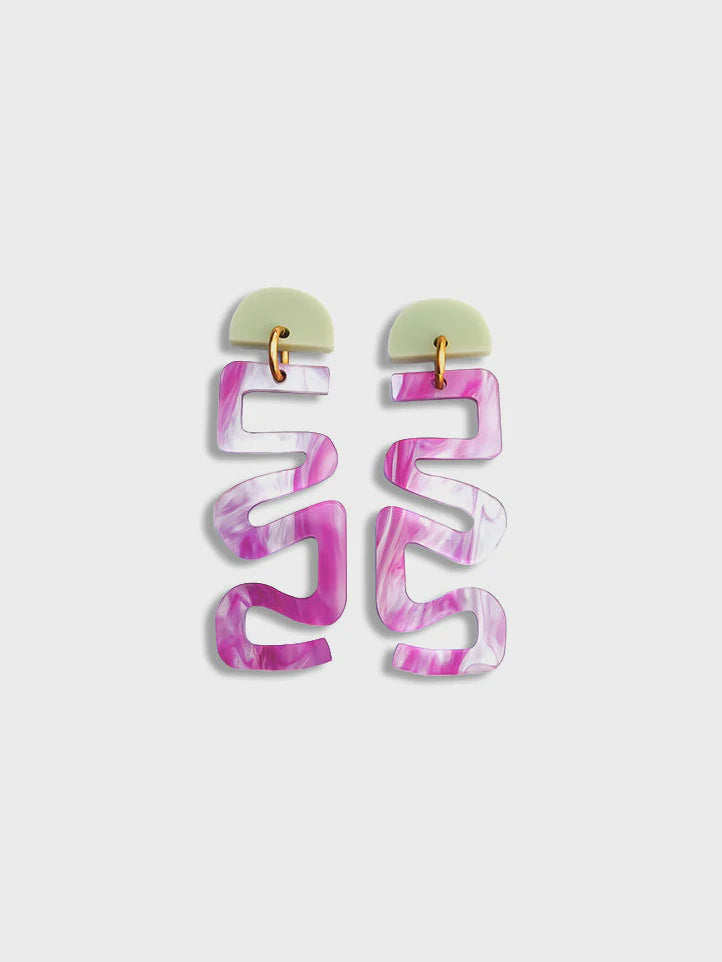 Our River Bends range transforms the beauty of the natural flow and bends of Australian rivers into mesmerising statement earrings. Mini approximately 2.5cm x 7cm Midi approximately 9cm x 3cm. This is a lightweight earring. Each pair are handmade to order so will be unique just for you. Handcrafted from acrylic and gold mirror and a surgical stainless steel post. A little note | This image should be used a guide only. Due to the nature of the materials and processes required to create our beautiful pieces, each pieces colour and pattern will be unique. We always endeavour to create pieces as close as possible to what is represented in the photo and we only ship what we love and would wear ourselves. Colours may vary depending on your computer and device screen - we do our best to accurately present colours and tones. The colours represented are in such a way if you were to hold your piece in the dazzling sunshine.