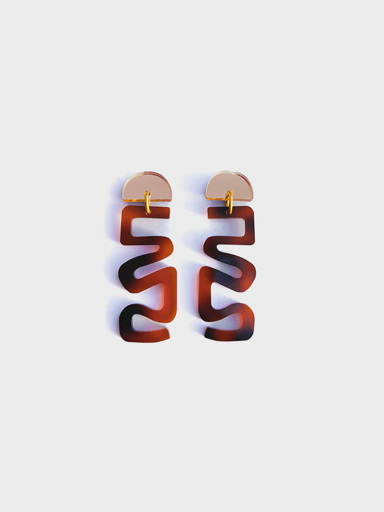 Our River Bends range transforms the beauty of the natural flow and bends of Australian rivers into mesmerising statement earrings. Mini approximately 2.5cm x 7cm Midi approximately 9cm x 3cm. This is a lightweight earring. Each pair are handmade to order so will be unique just for you. Handcrafted from acrylic and gold mirror and a surgical stainless steel post. A little note | This image should be used a guide only. Due to the nature of the materials and processes required to create our beautiful pieces, each pieces colour and pattern will be unique. We always endeavour to create pieces as close as possible to what is represented in the photo and we only ship what we love and would wear ourselves. Colours may vary depending on your computer and device screen - we do our best to accurately present colours and tones. The colours represented are in such a way if you were to hold your piece in the dazzling sunshine.