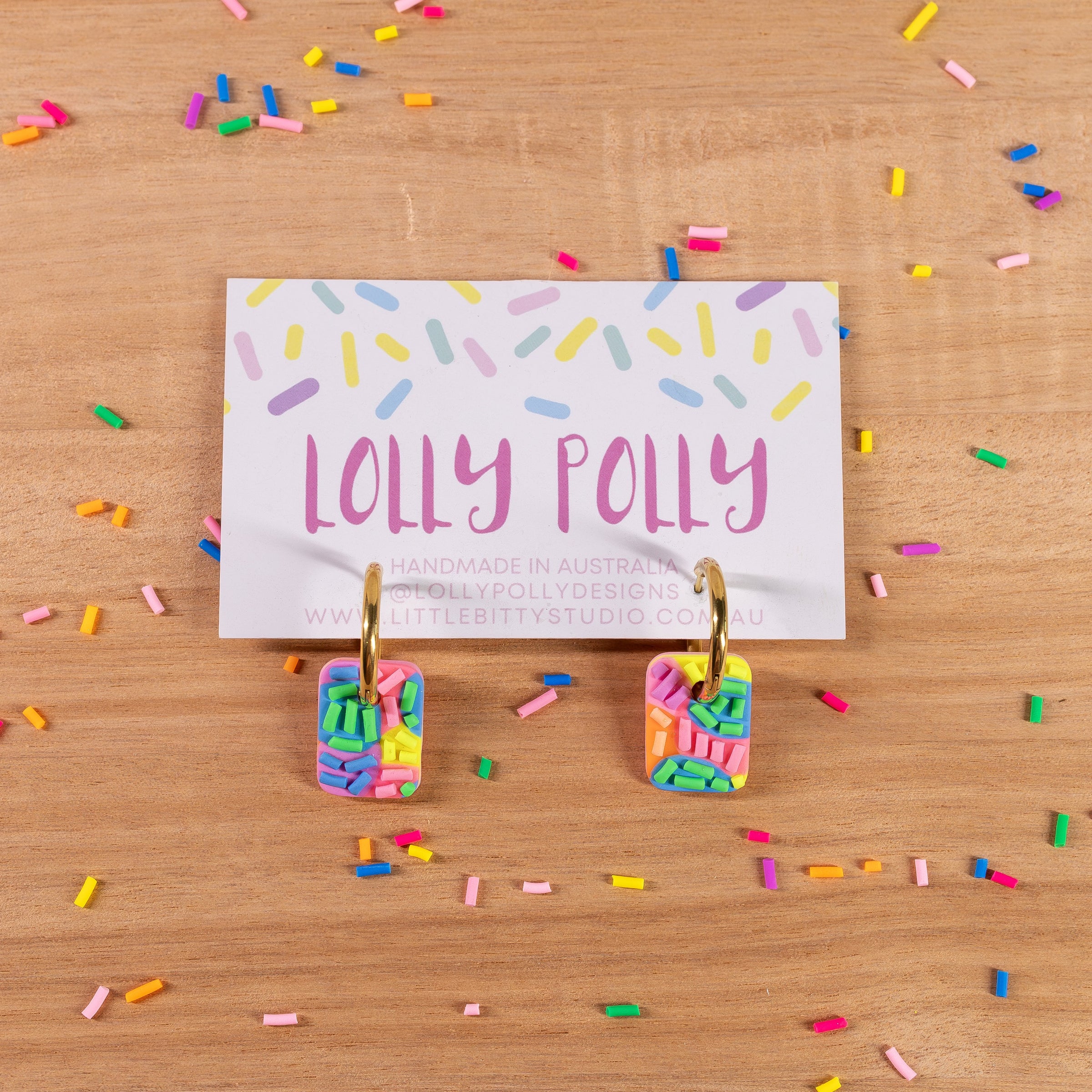 BRIGHT, FUN, BOLD! Designed to turn heads, empower, and make the world a little brighter! Bright multi-coloured polymer clay earrings to add a whole lot of extra fun to your outfit! These stylish, super fun statement earrings are so lightweight you'll forget you're even wearing them! All Lolly Polly earrings are made with hypo-allergenic, surgical steel posts and backings. Perfect for sensitive ears! Being completely and individually handmade, no two earrings are ever exactly the same (they're sisters, not twins). There will be subtle differences from the pair pictured, but they will be made using the same colours and materials.