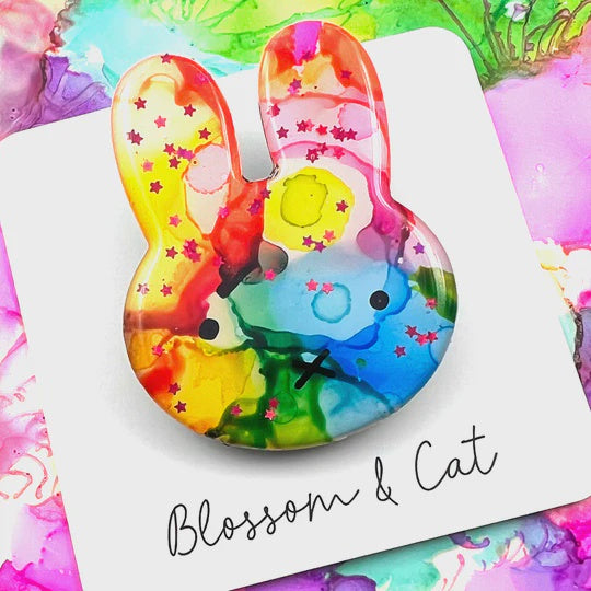 Blossom & Cat | Bunny Brooch · Inky Resin · 03