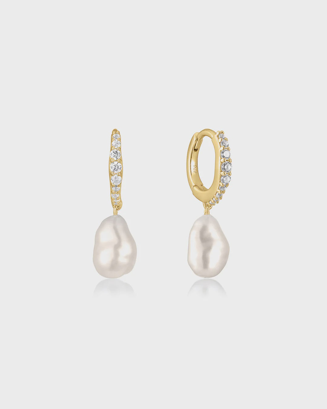 The Eleanor Pearl Sleepers feature a crystal hoop with hanging fresh water pearl. An dainty style perfect for everyday or a special occasion.