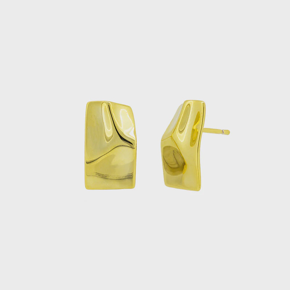 DESCRIPTION: The Gillian Earrings feature a rectangular shape with destressed gold detailing at the stud. A gorgeous and uniquely designed earring to elevate your jewellery collection.