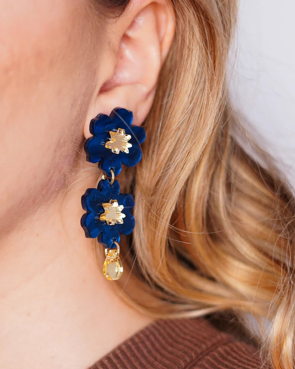 Ceramic Studs - Blue & Brass