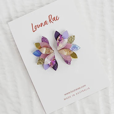 Beautiful statement earrings made of laser cut acrylic. Designed and handmade in Melbourne Australia Length approx 40 mm Colours may vary in real life due to the settings of your device or monitor.