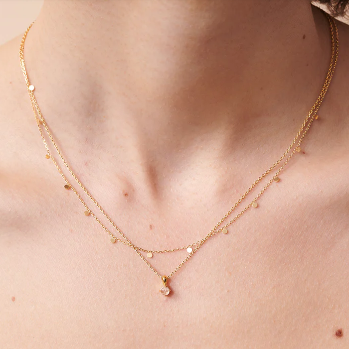 The Amara Necklace is a delicate style with tiny circle charms. Perfect for everyday or wear layered with your favourite coin necklace.