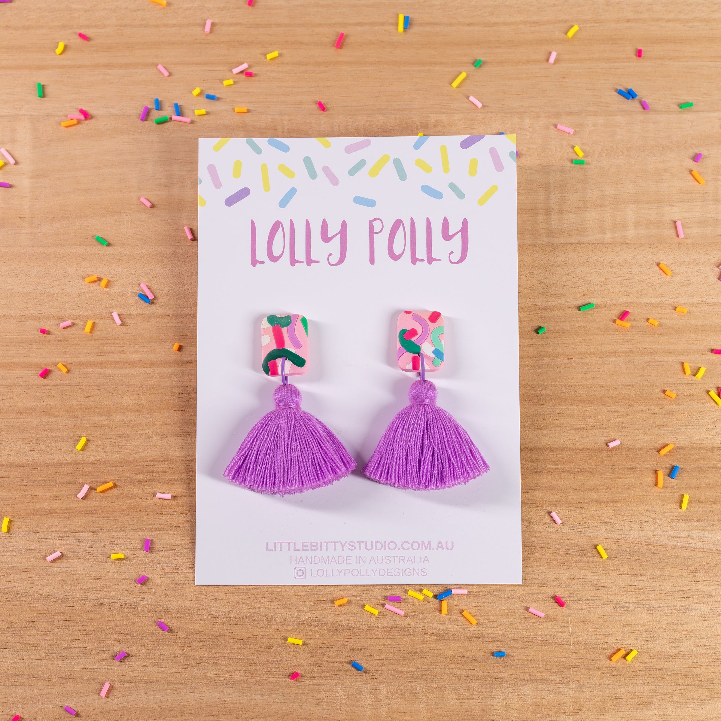 BRIGHT, FUN, BOLD! Designed to turn heads, empower, and make the world a little brighter! Bright multi-coloured polymer clay earrings to add a whole lot of extra fun to your outfit! These stylish, super fun statement earrings are so lightweight you'll forget you're even wearing them! All Lolly Polly earrings are made with hypo-allergenic, surgical steel posts and backings. Perfect for sensitive ears! Being completely and individually handmade, no two earrings are ever exactly the same (they're sisters, not twins). There will be subtle differences from the pair pictured, but they will be made using the same colours and materials.