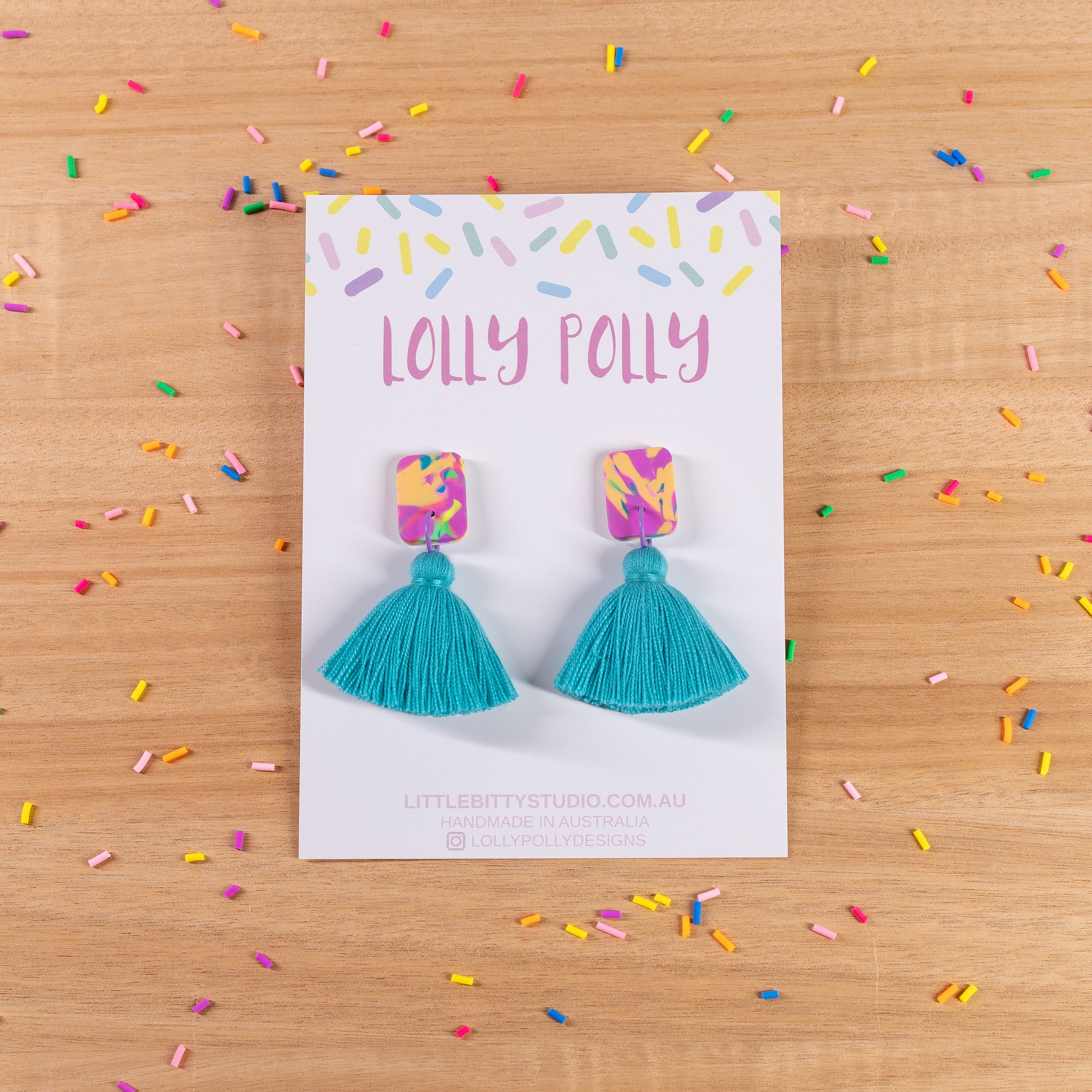 BRIGHT, FUN, BOLD! Designed to turn heads, empower, and make the world a little brighter! Bright multi-coloured polymer clay earrings to add a whole lot of extra fun to your outfit! These stylish, super fun statement earrings are so lightweight you'll forget you're even wearing them! All Lolly Polly earrings are made with hypo-allergenic, surgical steel posts and backings. Perfect for sensitive ears! Being completely and individually handmade, no two earrings are ever exactly the same (they're sisters, not twins). There will be subtle differences from the pair pictured, but they will be made using the same colours and materials.