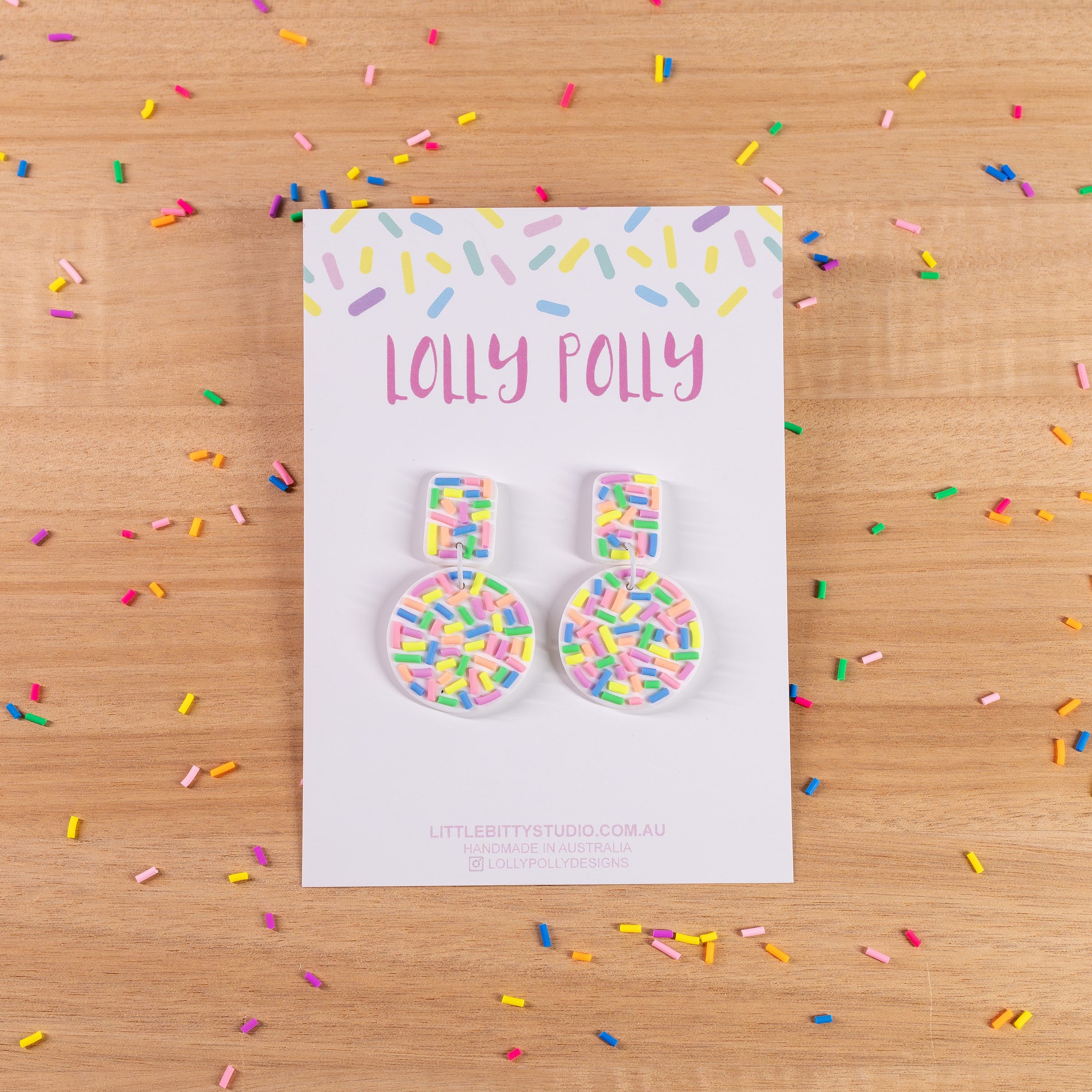 BRIGHT, FUN, BOLD! Designed to turn heads, empower, and make the world a little brighter! Bright multi-coloured polymer clay earrings to add a whole lot of extra fun to your outfit! These stylish, super fun statement earrings are so lightweight you'll forget you're even wearing them! All Lolly Polly earrings are made with hypo-allergenic, surgical steel posts and backings. Perfect for sensitive ears! Being completely and individually handmade, no two earrings are ever exactly the same (they're sisters, not twins). There will be subtle differences from the pair pictured, but they will be made using the same colours and materials.