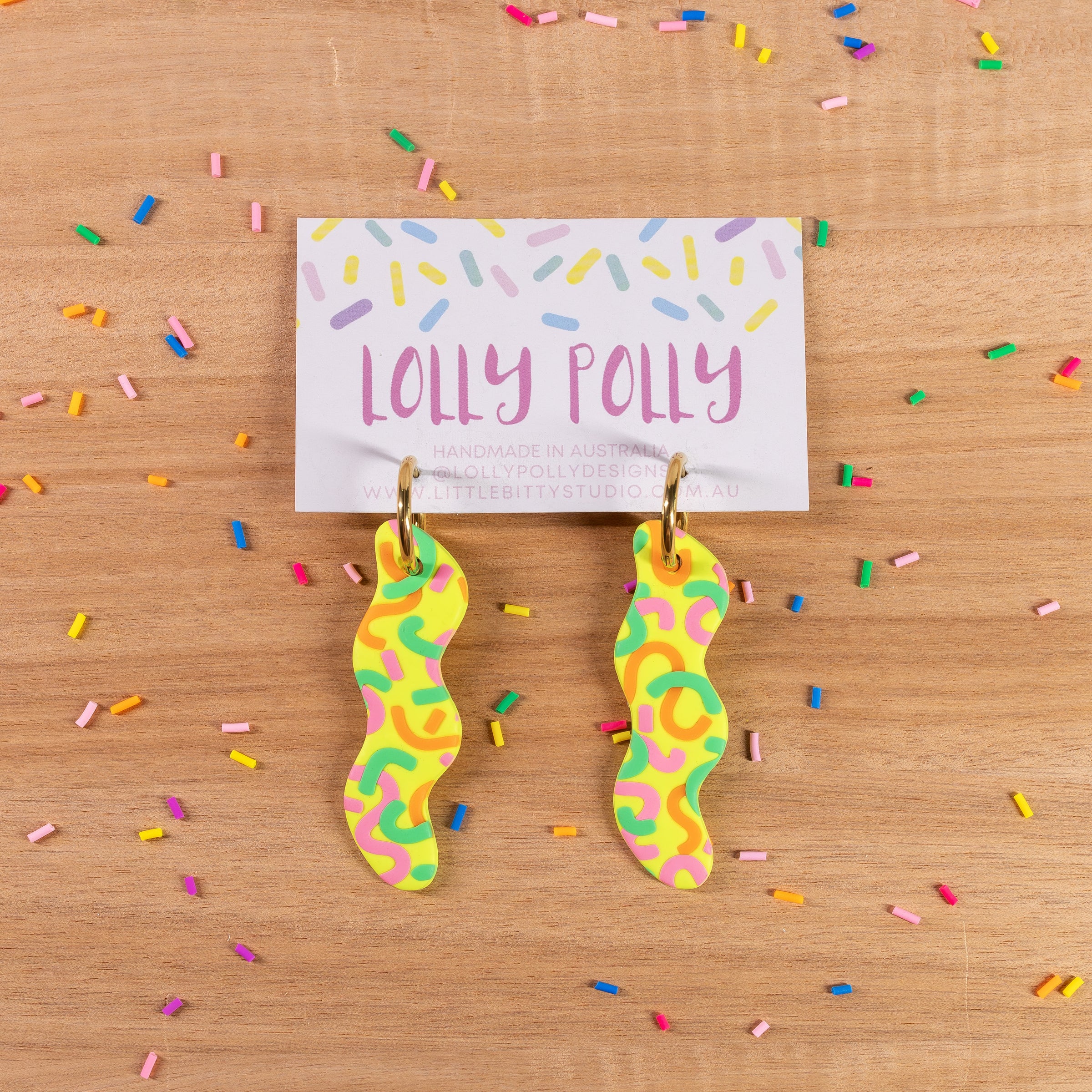 BRIGHT, FUN, BOLD! Designed to turn heads, empower, and make the world a little brighter! Bright multi-coloured polymer clay earrings to add a whole lot of extra fun to your outfit! These stylish, super fun statement earrings are so lightweight you'll forget you're even wearing them! All Lolly Polly earrings are made with hypo-allergenic, surgical steel posts and backings. Perfect for sensitive ears! Being completely and individually handmade, no two earrings are ever exactly the same (they're sisters, not twins). There will be subtle differences from the pair pictured, but they will be made using the same colours and materials.
