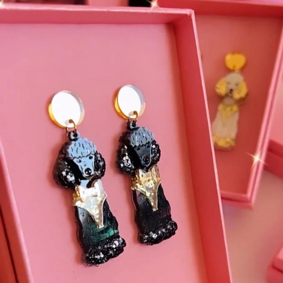 Oh, how glamorous Poodles are. A loveable canine they are sure to make everyone smile. Hand crafted from high quality acrylic, these earrings are a must-have accessory for any dog lover. What a delight, you'll be able to wear these dangles with any outfit and take your furry friend with you wherever you go. So why settle for a boring accessory.