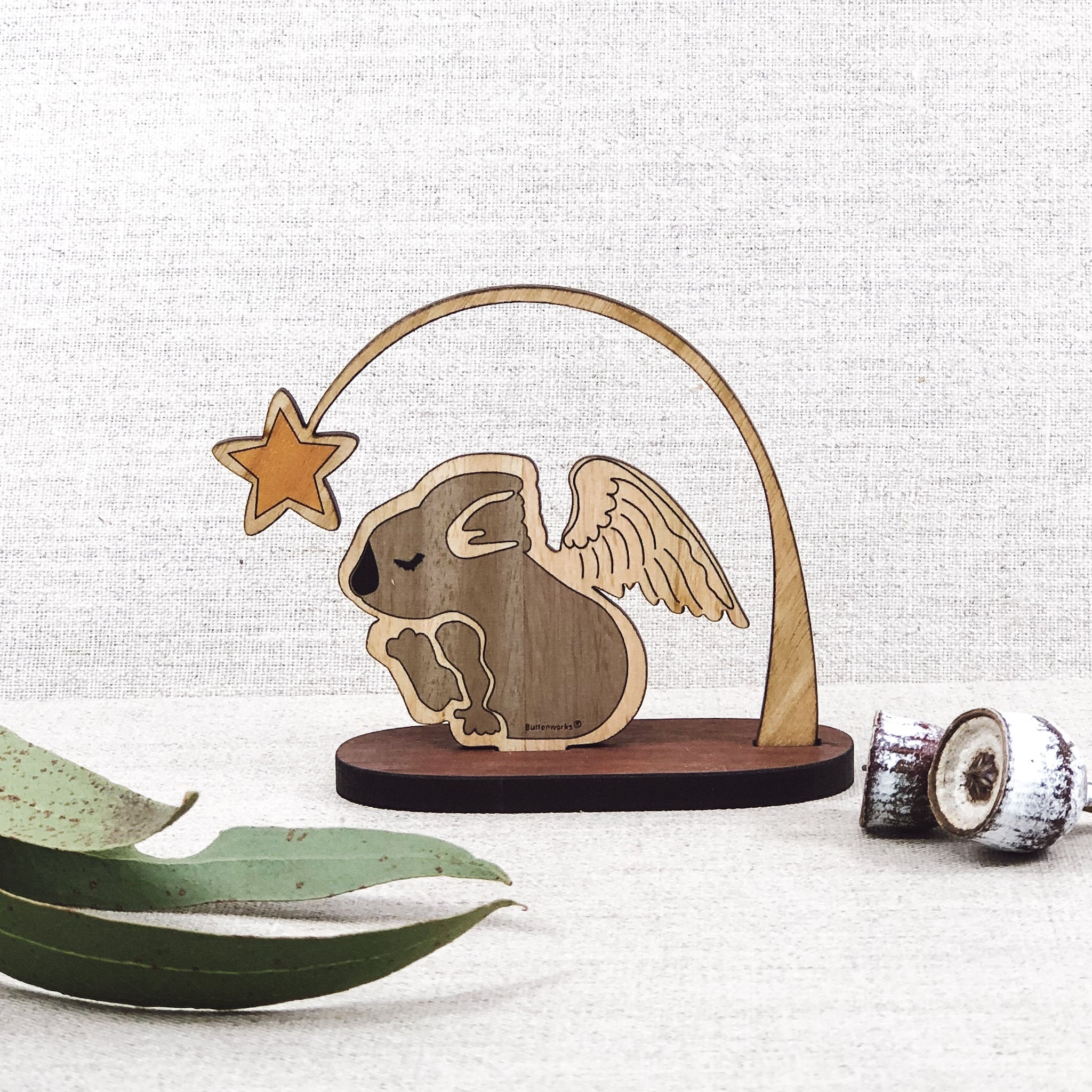 A playful, genuinely Australian range of Christmas decorations, inspired by the natural Australian wildlife, environment and traditional Christmas themes. Our Christmas Koala brings a bit of Australian charm to the Christmas season. Made from sustainably sourced Australian timber and comes packaged in a recycled card. Every tree is different, therefore the colour and grain of timber varies, making each of our products unique. The real work has been done by the tree, we have added the craftwork