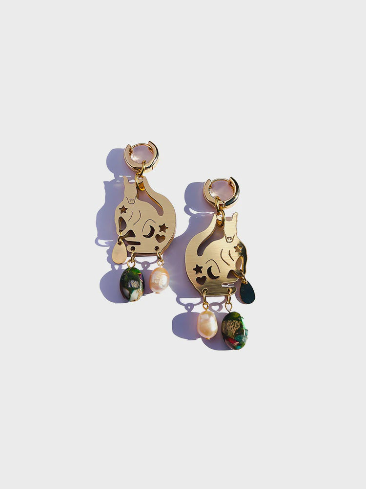 Materials; faux brass, mineral acrylic, freshwater pearl, brass charm, stone bead