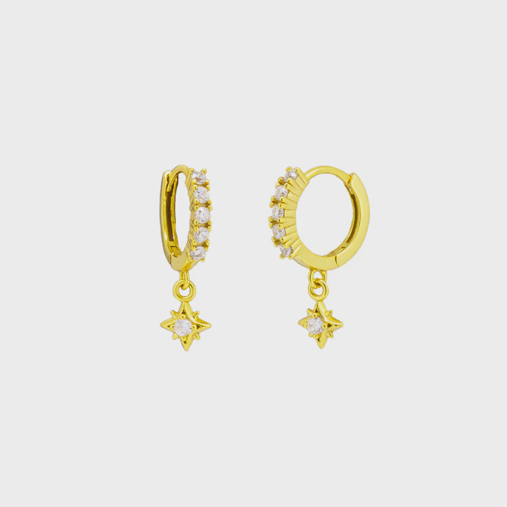 Effortlessly elevate your wardrobe with our Rosette Sleepers. They feature a small hoop adorned with cubic zirconia crystals with a hanging star pendant. A pretty style that is perfect for stacking.